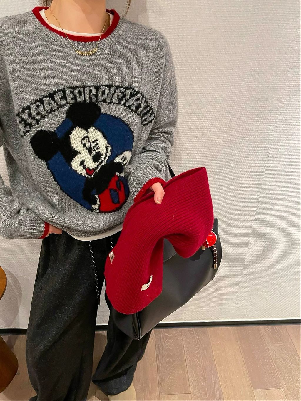 米奇撞色純羊毛衣